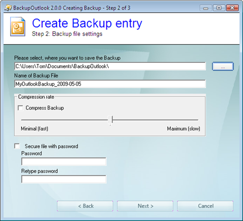 BackupOutlook also allows you to keep the last x versions of your backup. This is an extremely effective safety net, should you accidentally overwrite your single good backup with a bad one.