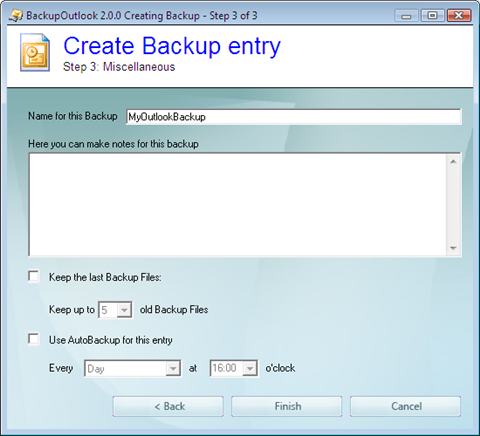 Finally click on 'Finish' to end the creation of this Backup entry.